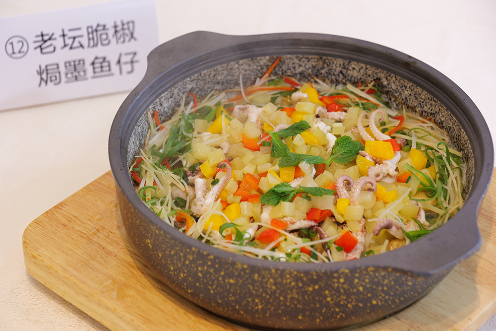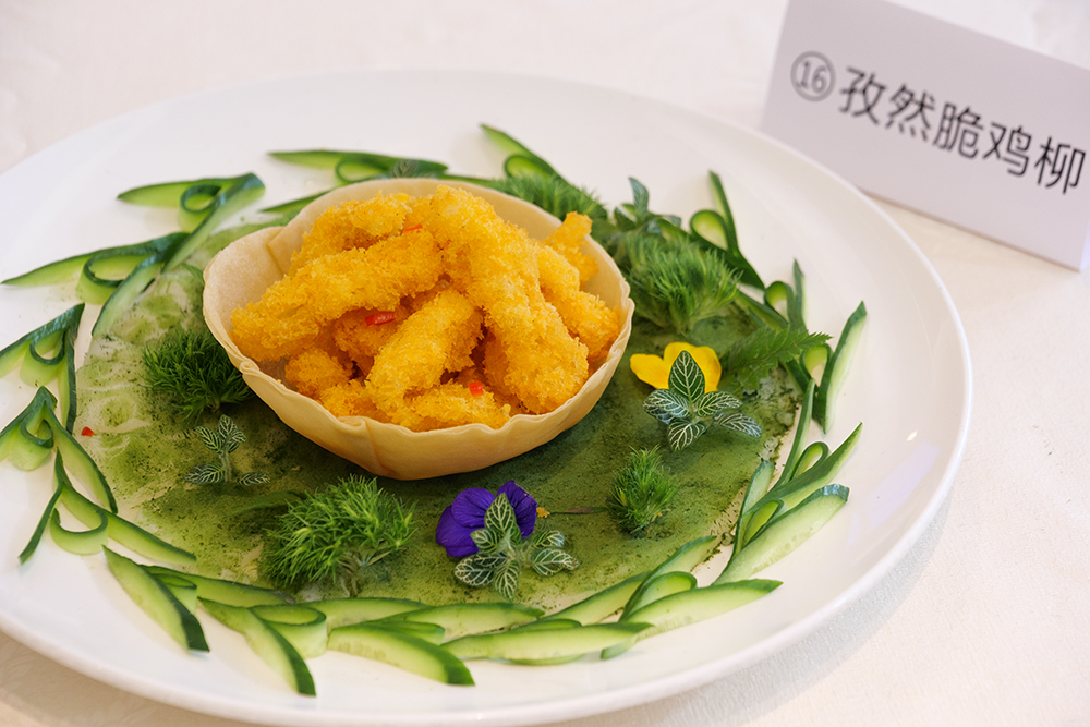 廚藝技能大賽里有創(chuàng)意菜品制作、傳統(tǒng)菜品烹飪和面點制作等多種菜品,廚師們各展所長,現(xiàn)場烹飪出一道道色香味俱佳的美食,贏得了評委和顧客的高度贊許。