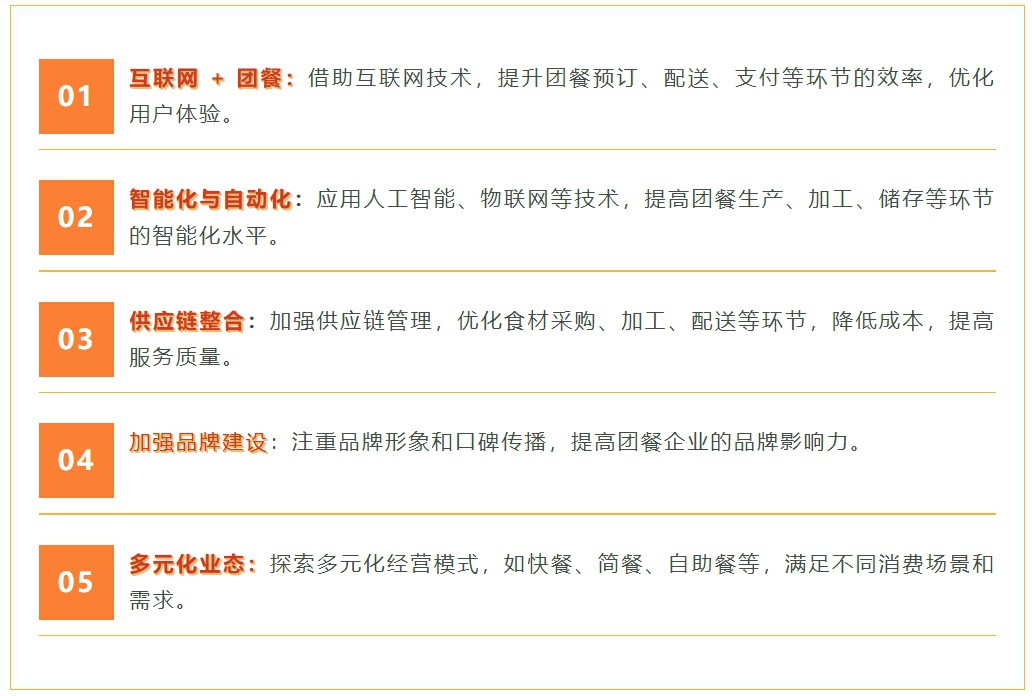 綜上,近年團餐行業發展前景良好,市場規模持續擴大,品牌競爭加劇,智能化和數字化成為行業發展趨勢。團餐企業需不斷創新和提升服務質量,以滿足消費者需求,搶占市場份額。