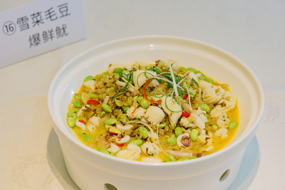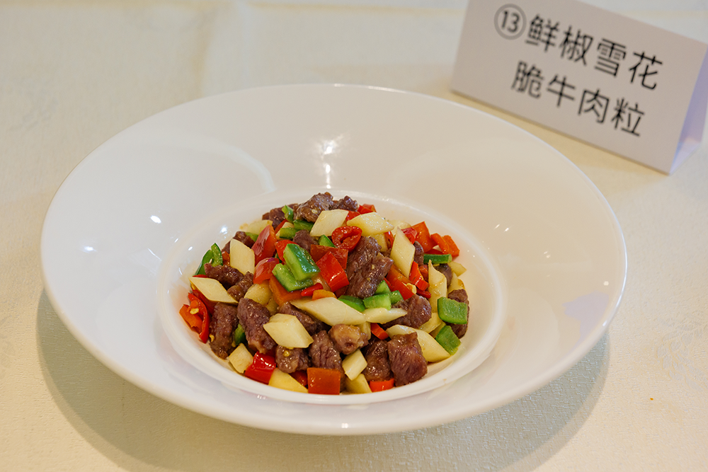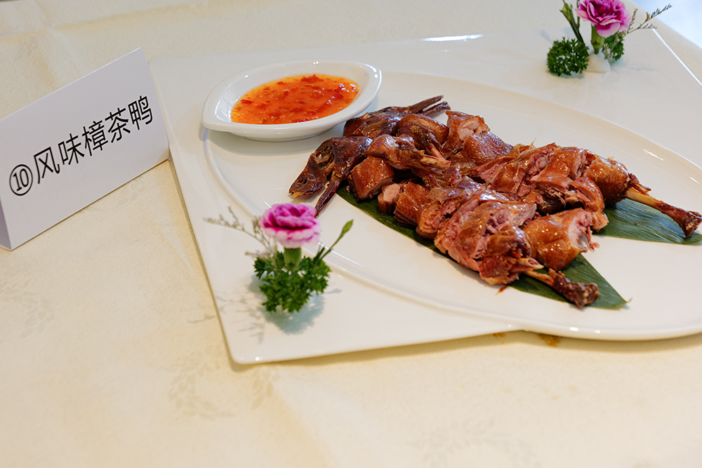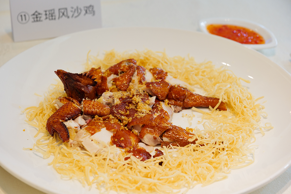 爐間拼廚藝,舌尖評美味?,F場廚師齊聚大賽亮絕活、比技能,20余道特色美食實力爭“鮮”。蜂蜜芥末黃蝦球、金瑤風沙雞、白云豬手、百花鳳凰卷......一道道色澤亮眼、鮮香撲鼻的菜品一一端上評委席,評委對每道菜淺嘗品鑒,時而相互討論,時而連連點贊。